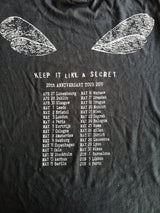 Keep It Like A Secret design on a black Gildan Softstyle t-shirt with 2019 European tour dates on the back. 100% cotton.