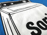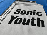 Sonic Youth's classic Washing Machine logo on a royal blue shirt.