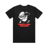 "Donnylannd Records" design screenprinted on a Black AS Colour Staple unisex T-shirt. 100% cotton.