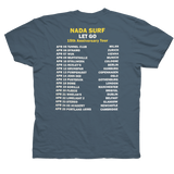 'Let Go' artwork on a blue tee and tour dates on the back.