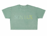 Son Lux Gradient Logo on a sage stonewash Continental - Women's cropped loose fit T-shirt