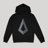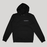 Double sided print on an unisex, black Stanley/Stella cruiser hoodie w. kangaroo pocket.