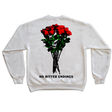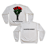 Sleater-Kinney No Bitter Endings design on a white sweatshirt.